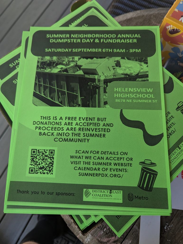 See the Event Page for more info -> https://sumnerpdx.org/event/sumner-dumpster-day/